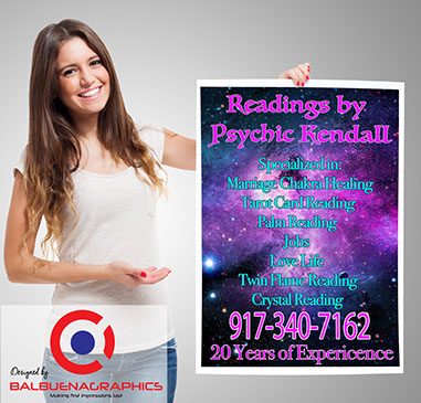 I am a psychic who is trying to get more people to come and get a tarot card reading, and help people with their love life. SO I wanted to get signs and flyers done to attract more attention. I went on Google in search of a graphics department to create the design, the signs and flyers.
